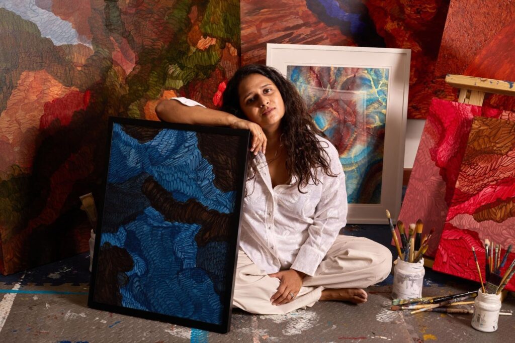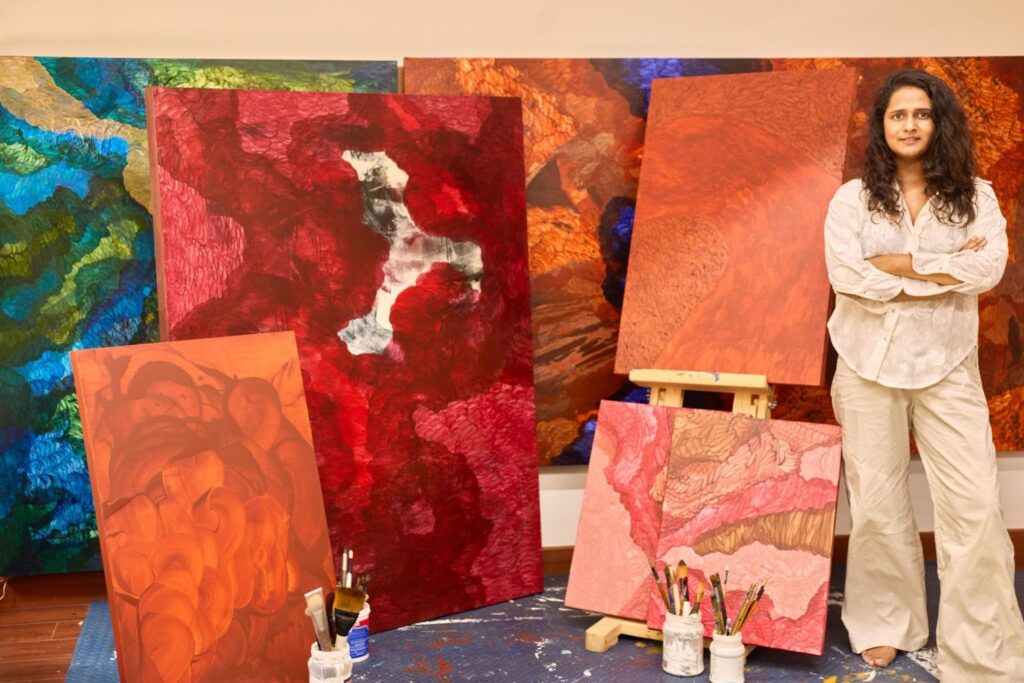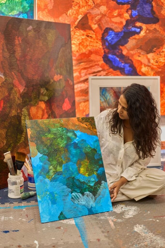 Usually, it begins with silence. Then, a single colour emerges in my mind, a tone that somehow carries an emotion I cannot yet name. From there, the process becomes a conversation between that emotion and the material. One of my favourite works began with a deep, stormy blue. As I layered and erased, other hues appeared like memories resurfacing. The final piece felt like an exhale, as if the painting knew what it wanted to become long before I did.