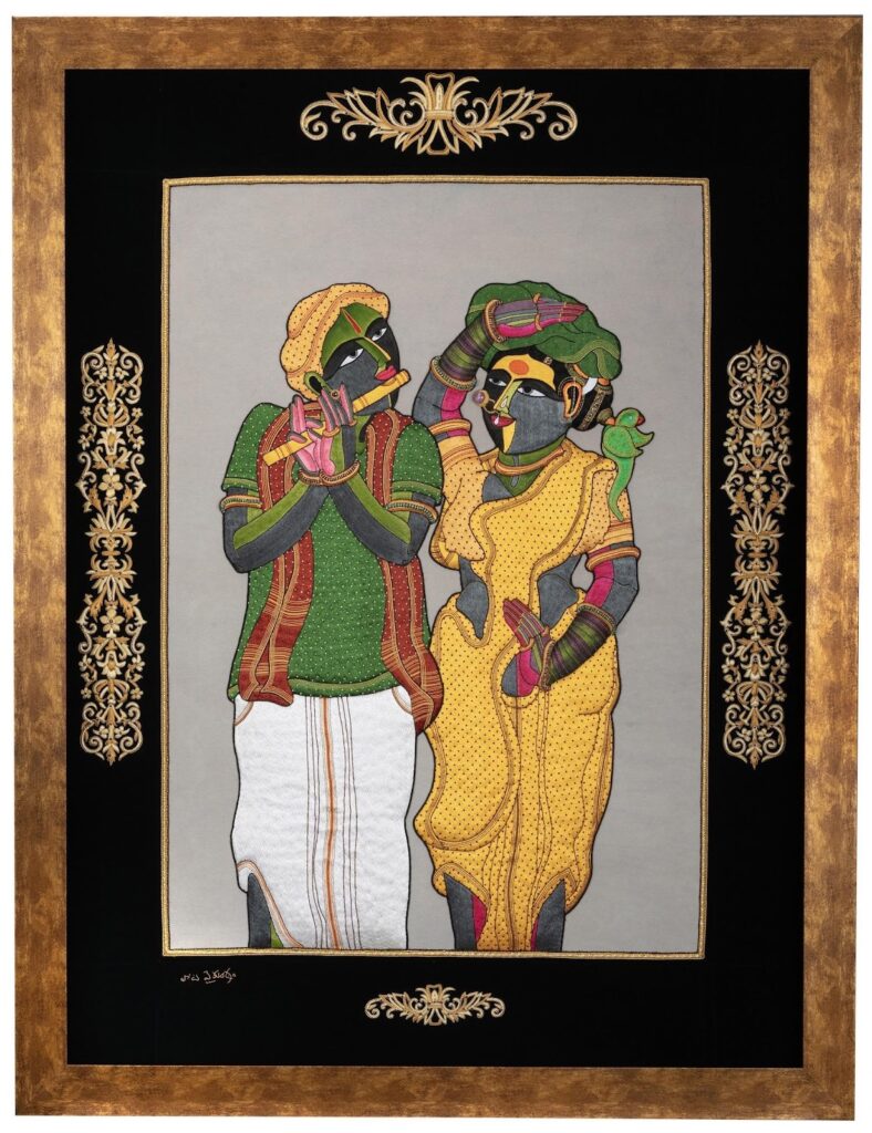 Thota Vaikuntam, one of India’s most celebrated modern artists, serendipitously brings his craft into the medium of embroidery. Reimagining his style through intricate handwork on textiles, the works showcase the beautiful blend of the artist and the artisan. Vaikuntam unites colour, form and texture in cohesive harmony.