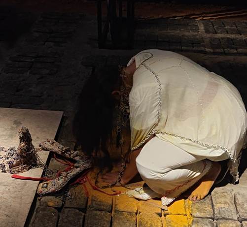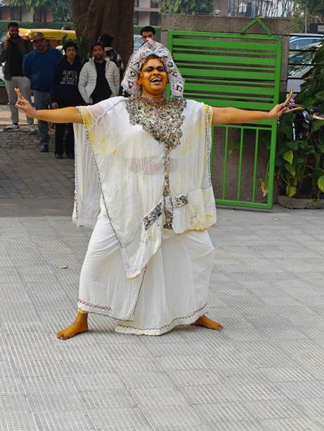 That sensibility shaped her opening performance at YCP 2026, Mother’s Calling. The work did not remain anchored to a single site. It began at the amphitheatre of Triveni Kala Sangam, where her voice first filled the space, raw cries and sounds that immediately stilled the crowd. From there, she moved steadily onward and the audience moved with her.