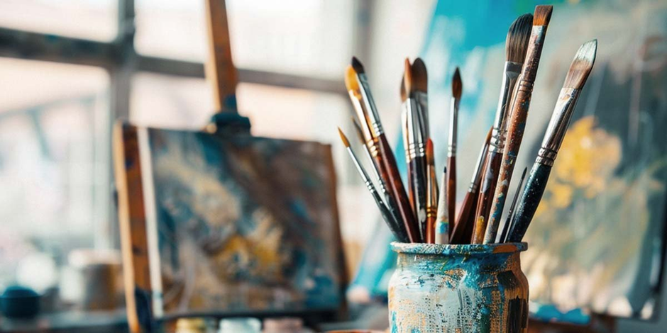 Brushes poised in a jar, capturing the quiet beginnings of creativity.