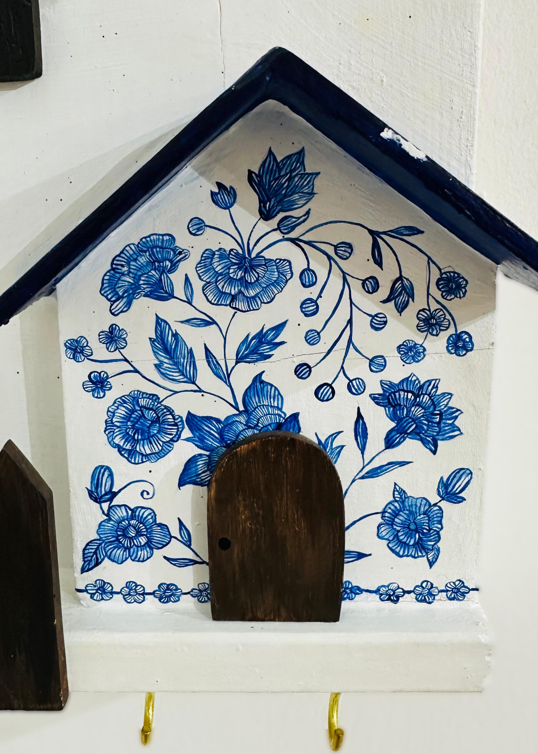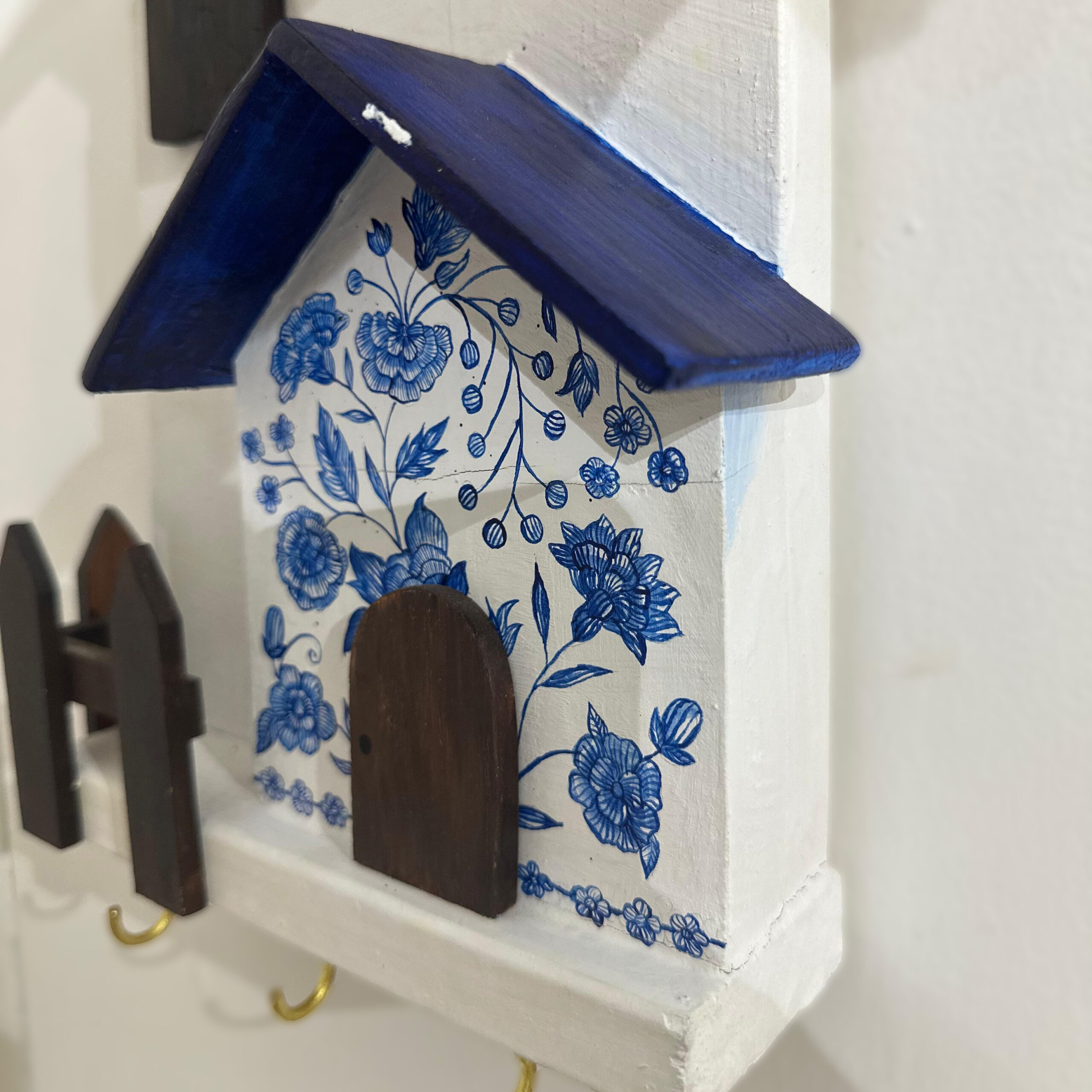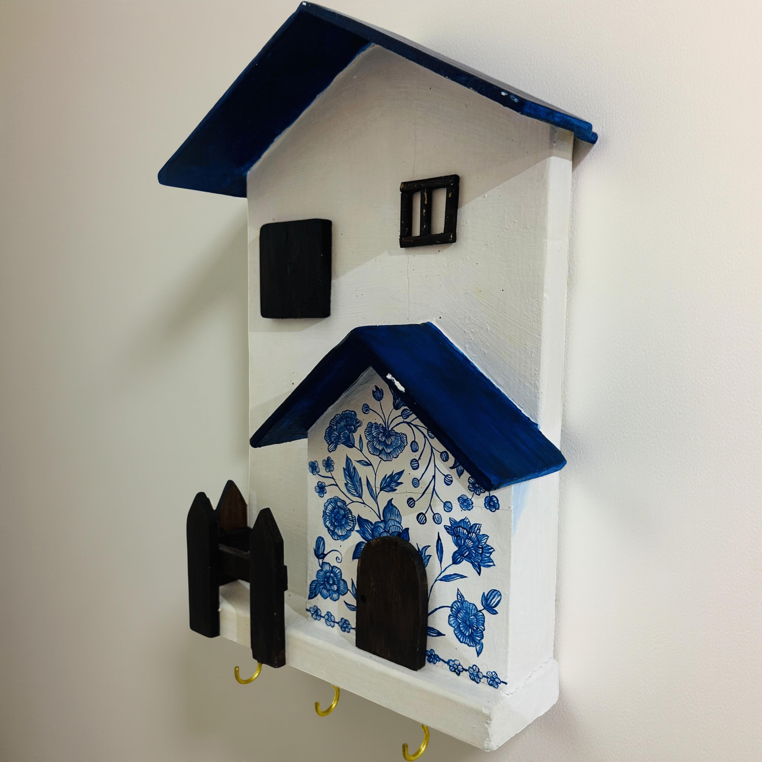 Keep your keys organized in style with this handcrafted & hand-painted wooden keyholder, designed with a miniature house artwork and floral detailing. Made from durable wood with a smooth finish, it’s not just a functional key rack but also a charming wall décor piece.