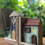 The design includes a dual-roof cottage style with textured bark detailing and vibrant pastel walls in lilac, yellow, and pink. Each side is hand-painted with fine detailing, making it a delightful art piece for children’s rooms, nurseries, or creative home corners.