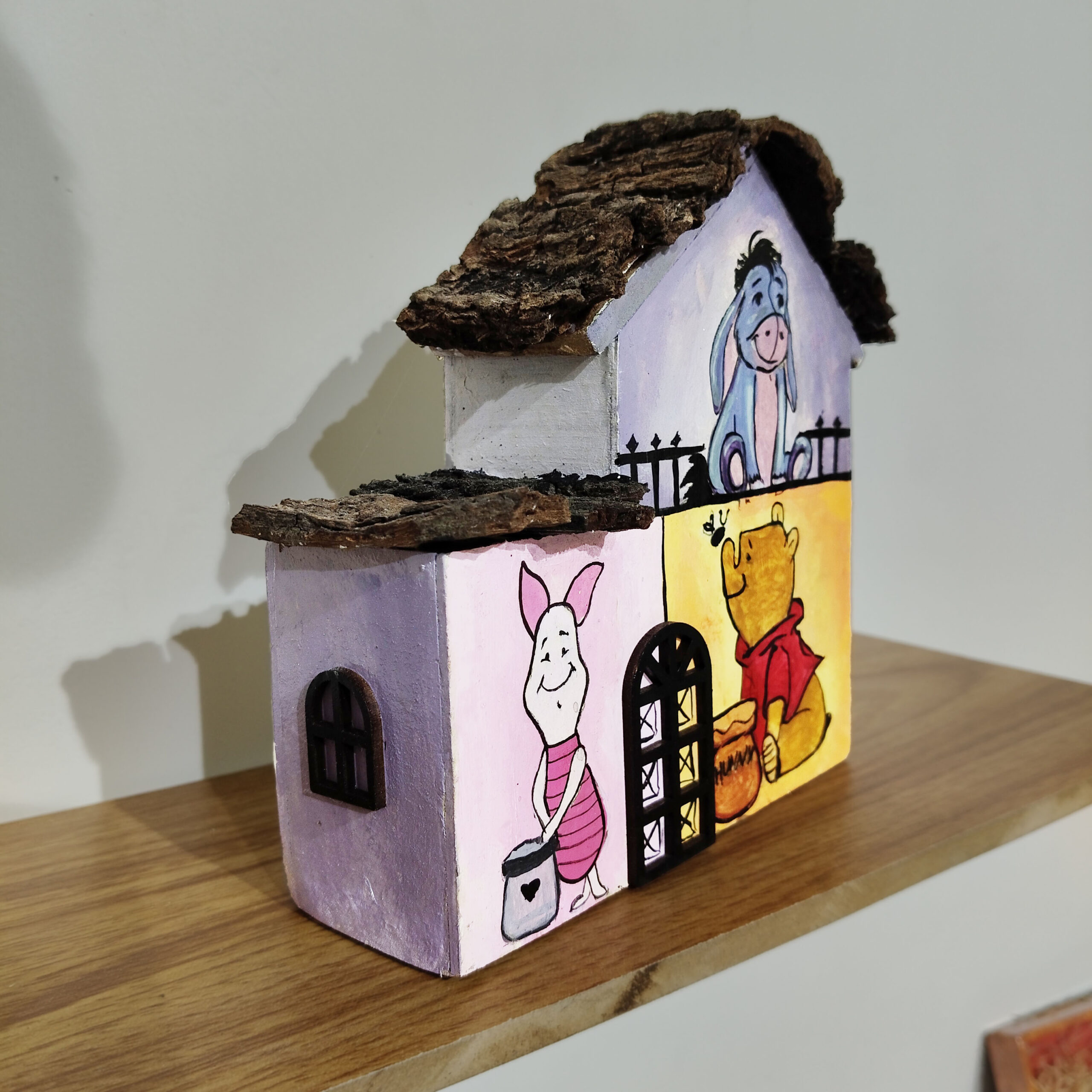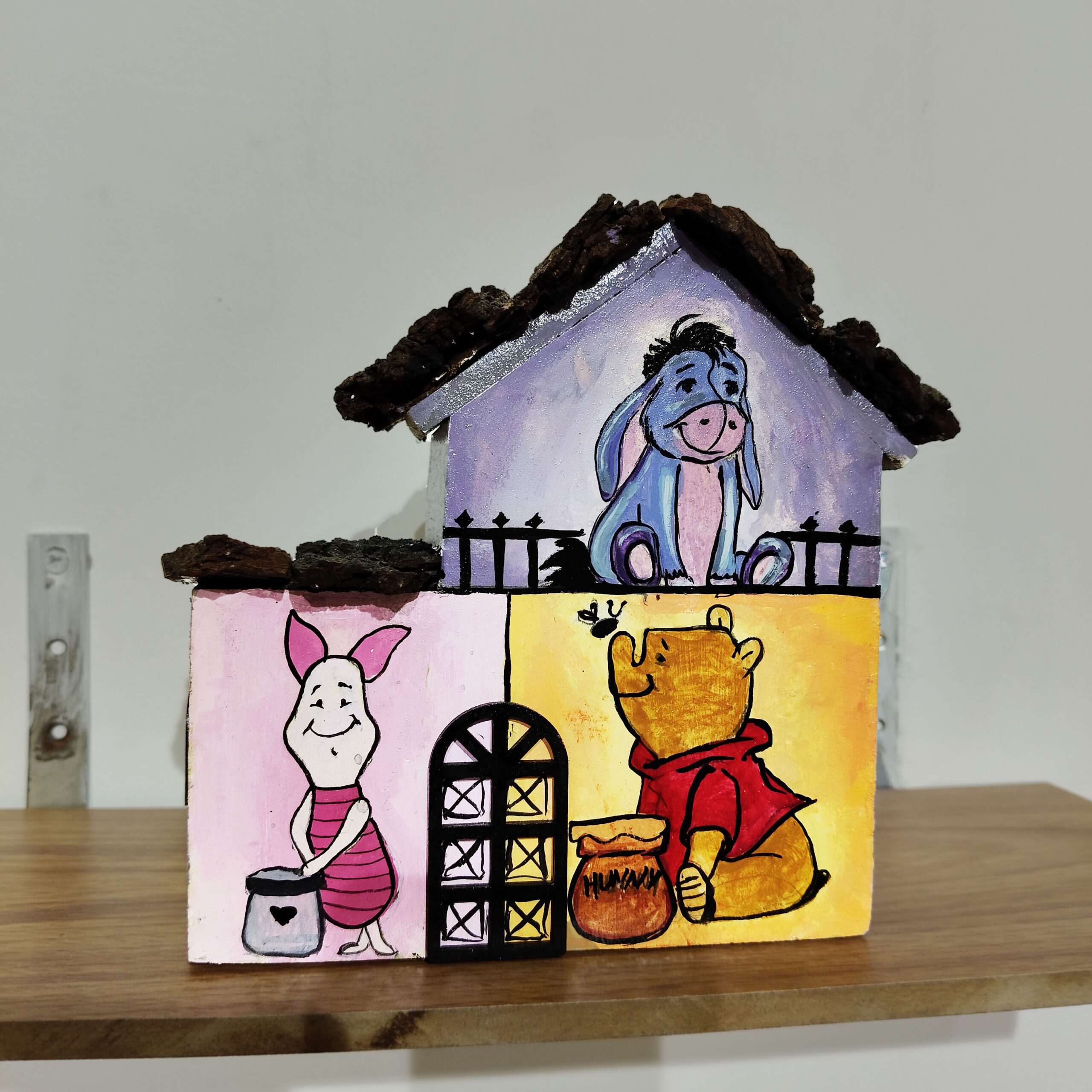 Bring playfulness and color to your home decor with this Handcrafted Wooden Cartoon House, beautifully painted with beloved characters — Winnie the Pooh, Piglet, and Eeyore.